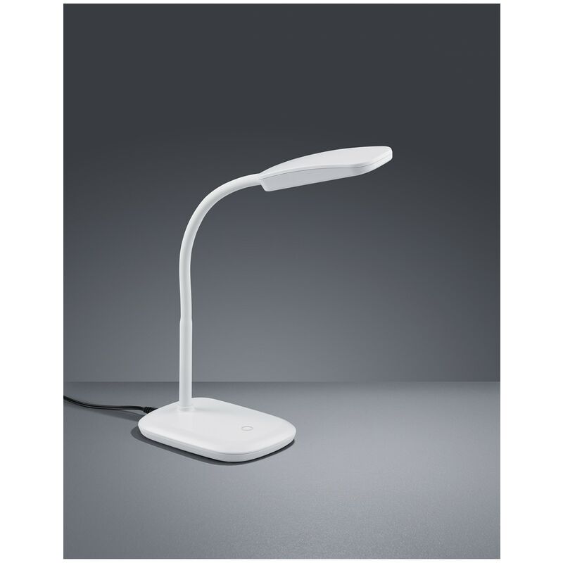 La lampada da scrivania BOA di Trio Lighting è composta da una struttura interamente in plastica con braccio flessibile finitura bianca, sensore touch alla base. Disponibili anche le varianti di finitura grigia, verde e viola. Modulo LED integrato 3,5 watt, 350 lumen, 3000k (luce calda). Dimmerabile. Una lampada da tavolo moderna pratica e versatile, indicata sia per la casa che per l'ufficio o lo studio.