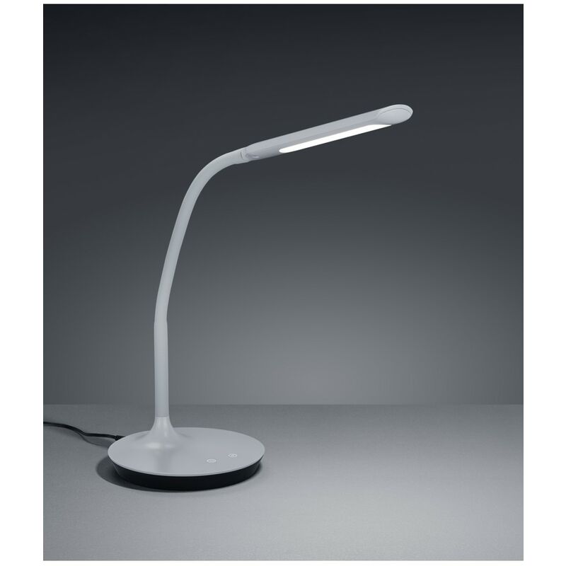Lampada da Scrivania Moderna con Braccio Flessibile LED Touch Grigio La lampada da scrivania Polo di Trio Lighting presenta una base rotonda, braccio flessibile e diffusore sottile, realizzata interamente in plastica grigia. Dotata di modulo SMD LED 5 watt, resa luminosa 550 lumen, 3000k, 4000k, 5000k (luce calda, naturale e fredda). Grazie ai pulsanti touch presenti sulla base è possibile regolare l'intensità di luce a 4 livelli e la temperatura colore della luce da calda a fredda. Una lampada da scrivania dal design moderno, pratica e versatile. Il suo braccio flessibile la rende perfetta per illuminare in maniera efficiente la scrivania nella zona di lettura desiderata o anche il monitor del vostro computer. Utile sia in casa che in ufficio. Disponibile anche la versione di colore bianco opaco. Caratteristiche: Base rotonda Braccio flessibile Diffusore sottile Modulo SMD LED 5 watt Resa luminosa 550 lumen 3000k, 4000k, 5000k (luce calda, naturale e fredda) Pulsanti touch per