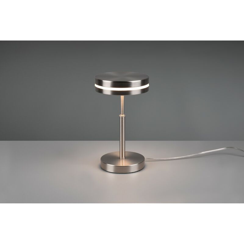 Lampada Tavolo Disco Led 6w Nichel Trio Lighting La lampada da tavolo Franklin di Trio Lighting è composta da una struttura in metallo di colore nichel opaco con base rotonda, fusto lineare e diffusore a forma di disco. Interruttore su cavo. Sorgente luminosa a Led integrato da 6 watt, resa luminosa 700 lumen, temperatura colore 3000k (luce calda). Una lampada dal design minimale, moderno ed originale da poter collocare sopra console, tavolini, comodini e scrivanie di ambienti residenziali o contesti ricettivi e lavorativi. Consigliata ad esempio per un ufficio, un ingresso, una camera da letto o un soggiorno living. Disponibile anche la versione di colore ottone o antracite e altri articoli correlati della stessa serie.