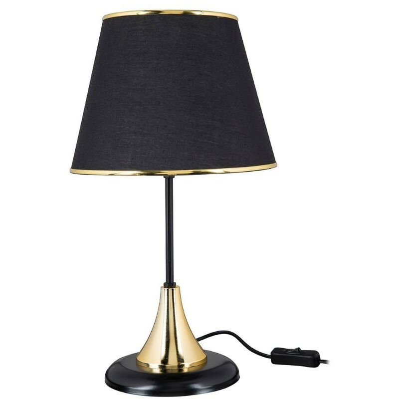 Lampada da tavolo Aden metallo e paralume tessuto nero ASZ1632 Lampada da tavolo Aden con struttura in metallo e paralume in tessuto nero. I dettagli in oro aggiungono un tocco di eleganza a questa lampada moderna. Con un'altezza di 42 cm, il paralume ha una larghezza di 25 cm e un'altezza di 18 cm. L'attacco lampadina è di tipo E27. La base nera e il paralume nero si combinano perfettamente per creare un look sofisticato e contemporaneo. Aggiungi un'illuminazione accogliente e stilizzata al tuo spazio con questa lampada da tavolo Aden. Caratteristiche: Struttura in metallo Paralume in tessuto Colore base nera Colore paralume nero Dettagli oro Altezza 42 cm Larghezza paralume 25 cm Altezza paralume 18 cm Attacco lampadina 1 x E27