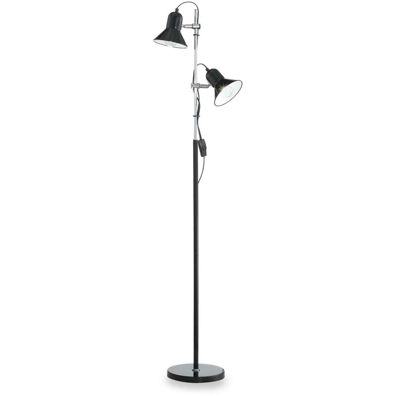 Lampada da terra nero D 220 x H 1540 mm Caratteristiche: Lampadina inclusa=No Kit fissaggio=No Attacco lampada=E27 Volt=220-240 V AC Watt=E27 max 2 x 60W Finitura=nero Colore rosone=nero Materiale=Metallo Dimensioni= D 220 x H 1540 mm