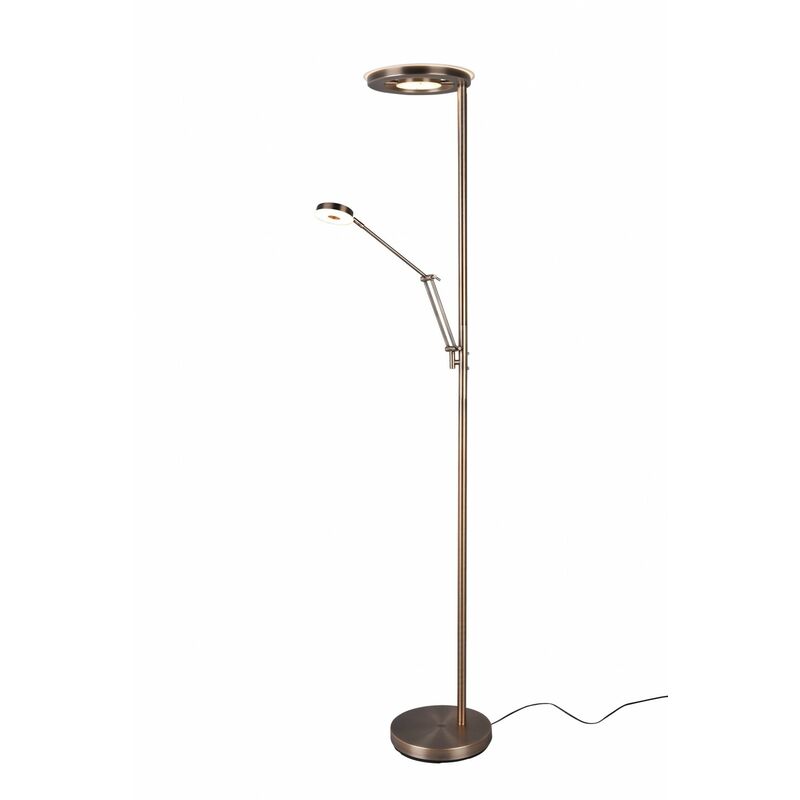 Piantana Led Moderna con Luce Spot da Lettura Dimmerabile La lampada da terra Barrie di Trio Lighting è composta da una struttura lineare in metallo ottone invecchiato con piastra a led integrato e spot con braccio flessibile e orientabile posizionato in basso. Dotata di due sorgenti luminose, una principale a Led integrato da 32 watt, resa luminosa 4000 lumen, 2700k+4000k, e una secondaria posizionata nello spot da 6 watt con resa di 600 lumen, 2700k+4000k. Le due fonti luminose possono essere accese e spente indipendentemente le une dalle altre. Grazie alla funzione dimmer integrata è possibile regolare la temperatura colore e l'intensità della luce tramite sensore touch. L'ultimo settaggio selezionato verrà memorizzato e utilizzato alla prima accensione utile dell'apparecchio. Una piantana multifunzionale, versatile ed elegante, consigliata per essere collocata in diverse zone della vostra casa arredata in stile moderno, perfetta ad esempio per lo studio, l'ufficio o la zona
