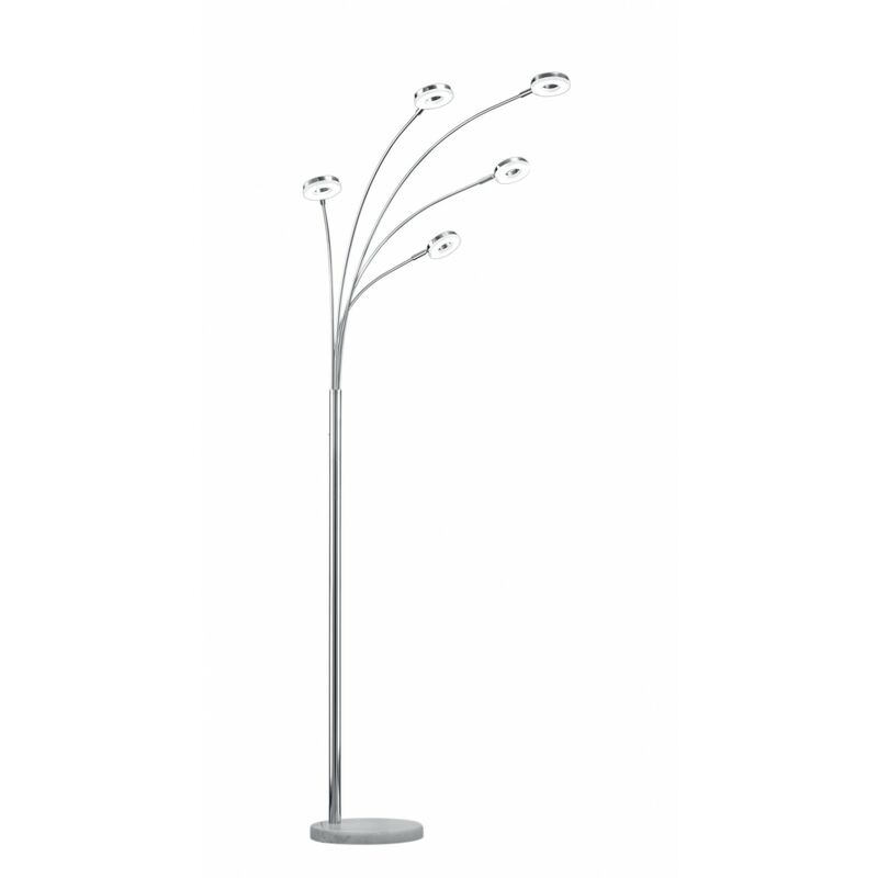 Piantana Led Rennes Cromo 5 Anelli Led Orientabili La piantana Rennes di Trio Lighting è composta da un fusto in metallo finitura cromo con 5 bracci ad arco che sorreggono i diffusori ad anello in plastica bianca, orientabili. Interruttore ON/OFF incluso. Dotata di modulo led integrato 5 x SMD LED 4 watt, 350 lumen, 3000k (luce calda). Semplice ed allo stesso tempo elegante, questa lampada da terra si caratterizza per il suo stile unico e moderno, ideale per l'illuminazione del vostro salone o sala da pranzo. Caratteristiche: Fusto in metallo finitura cromo 5 bracci ad arco Diffusori ad anello in plastica bianca, orientabili Interruttore ON/OFF incluso Modulo led integrato 5 x SMD LED 4 watt 350 lumen, 3000k (luce calda) Stile unico e moderno Ideale per l'illuminazione del salone o sala da pranzo