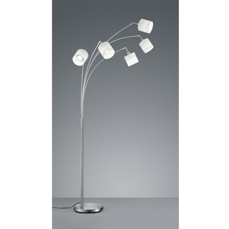 La piantana TOMMY di Trio Lighting presenta una base rotonda, un fusto lineare sottile in metallo finitura nichel opaco e 5 paralumi cilindrici in tessuto bianco orientabili, interruttore a pedale incluso. Dotata di 5 alloggi per lampadine con attacco E14 max 28 watt (acquistabili separatamente). Una lampada da terra dal design elegante e sofisticato, ideale per essere collocata in diverse stanze della vostra casa arredata in stile moderno, ad esempio per la zona living, la camera da letto, ma anche per contesti ricettivi, come stanze di hotel o alberghi. Disponibili anche nella finitura nero opaco.