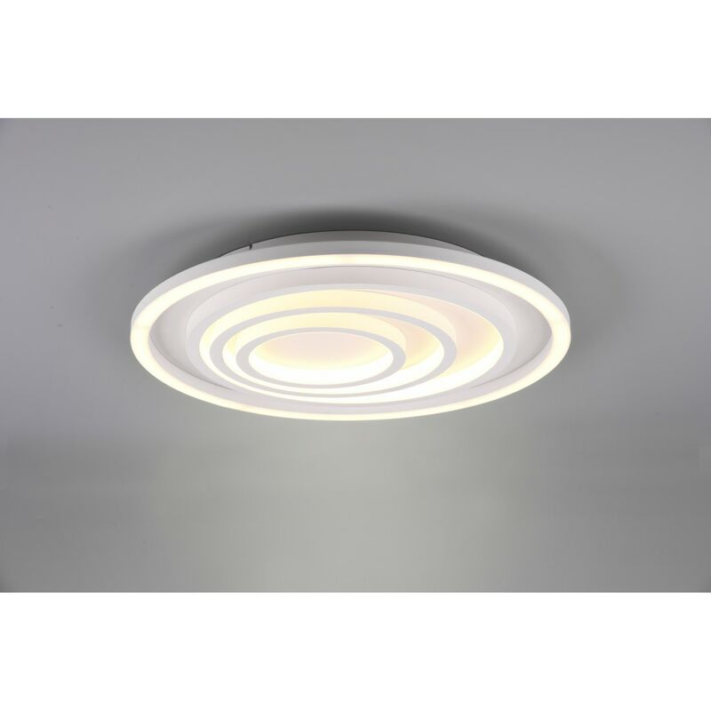 Plafoniera Circolare Moderna Led Dimmer Kagawa Bianco La lampada da soffitto KAGAWA di Trio Lighting presenta una montatura rotonda in metallo di colore bianco opaco composta da diversi cerchi concentrici. Sorgente luminosa a Led integrato da 40 watt, resa luminosa 5000 lumen, temperatura colore 2700k - 6000k (luce calda, fredda e naturale). Grazie al il pratico telecomando in dotazione è possibile variare l'intensità luminosa ed il colore della luce in modo graduale a diversi livelli. A rendere ancora più affascinante e originale questa lampada, di semplice installazione sia a soffitto, è l'effetto luce notturna. Una plafoniera dal design moderno, un perfetto complemento d'arredo per la vostra casa, ideale per illuminare in maniera ampiamente diffusa ad esempio una zona living, una camera da letto o un salone. Caratteristiche: Sorgente luminosa: Led integrato Potenza: 40 watt Resa luminosa: 5000 lumen Temperatura colore: 2700k - 6000k Telecomando: incluso Effetto luce notturna: sì