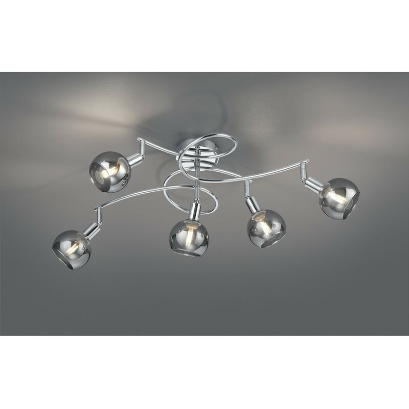 Plafoniera Girandola Brest Cromo 5 Vetri Fumé BOWIE di Trio Lighting è una lampada da soffitto composta da una piastra rotonda, bracci curvi in metallo finitura cromo e 5 spot a sfera in vetro fumé orientabili. Dotata di alloggio per 5 lampadine E14 max 15 watt (acquistabili separatamente). Un elemento versatile con un design brillante e moderno, ideale per qualsiasi tipo di ambiente, come ad esempio ingresso, corridoio, salotto e studio. Disponibili anche le varianti dimensionali e di finitura. Caratteristiche: Composizione: piastra rotonda, bracci curvi in metallo finitura cromo e 5 spot a sfera in vetro fumé orientabili Alloggio per 5 lampadine E14 max 15 watt (acquistabili separatamente) Design brillante e moderno Adatto per ingresso, corridoio, salotto e studio Varianti dimensionali e di finitura disponibili