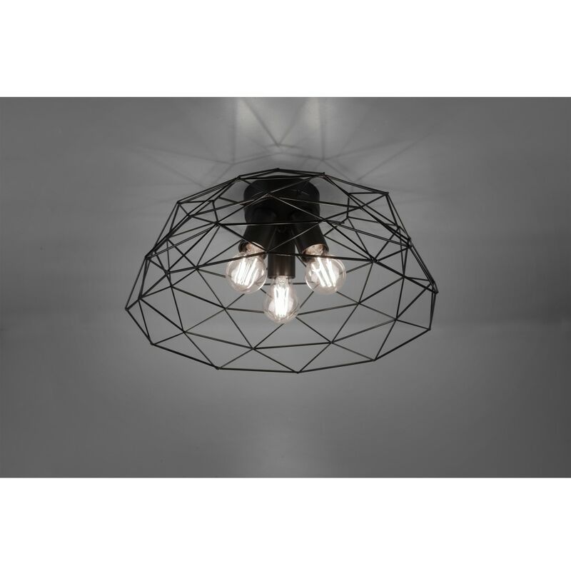 LA plafoniera HAVAL di Trio Lighting presenta una struttura a gabbia rotonda realizzata in metallo finitura nero opaco, al cui interno sono posizionati 3 portalampada con attacco E27 da max 25 watt. Le lampadine sono acquistabili separatamente, si consiglia l'utilizzo di lampadine a Led in vetro vintage sia per un maggior risparmio energetico sia per un effetto e resa estetica migliore. Una lampada dal design rustico-vintage, installabile facilmente a soffitto senza specifiche manutenzioni, perfetta per diverse camere della vostra casa, come ad esempio la zona living, l'ingresso o il salone. Disponibili anche altri articoli della stessa serie.