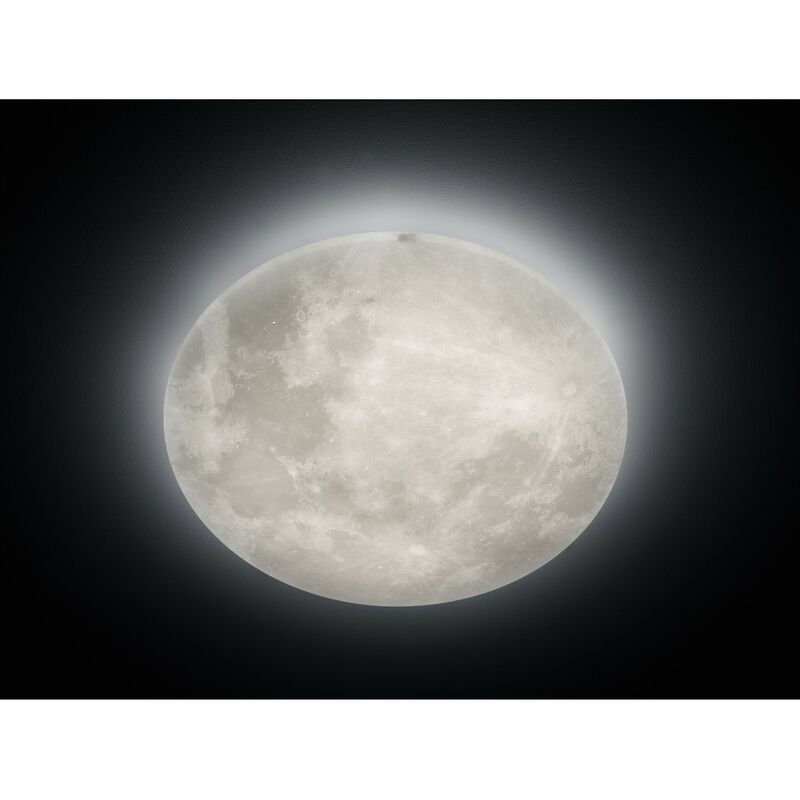 Plafoniera Led Fasi Lunari Effetto Luce Notturna Lunar Ø60 cm La lampada a plafoniera LUNAR di Trio Lighting è composta da una struttura rotonda in acrilico interamente di colore bianco dal diametro di 60 cm. Sorgente luminosa a Led integrato 40 watt, resa luminosa 3500 lumen, temperatura colore 3000k (luce calda). La sua particolarità consiste nel poter gestire e regolare un'illuminazione che simula le fasi lunari tramite il pratico telecomando in dotazione. Singolare e suggestiva, grazie anche alla funzione luce notturna, questa lampada è ideale per arredare e illuminare con un tocco originale diversi ambienti della vostra casa. Consigliata ad esempio per il corridoio, la camera da letto o il soggiorno. Caratteristiche: Struttura rotonda in acrilico Diametro: 60 cm Sorgente luminosa a Led integrato Potenza: 40 watt Resa luminosa: 3500 lumen Temperatura colore: 3000k (luce calda) Funzione luce notturna Telecomando incluso