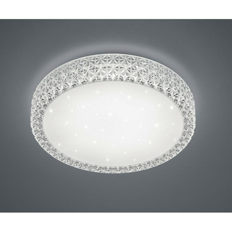 Plafoniera LED Multifunzioni Pegasus Bianco Ø60 cm La lampada da soffitto PEGASUS di Trio Lighting presenta una struttura rotonda realizzata in acrilico bianco e diffusore in plastica in tinta con la struttura. Modulo led integrato SMD da 27 watt, 3060 lumen, temperatura colore da 3000k a 5500k (luce calda, fredda e naturale). Il colore della luce e l'intensità luminosa possono essere regolate in modo graduale tramite dimmer integrato attivato dal pratico telecomando in dotazione. Non compatibile con dimmer esterno. Dotata di funzione di memorizzazione dell'ultimo settaggio, impostazione luce notturna ed effetto cielo stellato. Multifunzionale, versatile ed elegante, con possibilità di essere installata sia a parete che a soffitto, questa plafoniera è perfetta per la camera da letto o il soggiorno living. Disponibile anche la versione con bordo fumé o nella varianti dimensionali. Caratteristiche: Struttura rotonda in acrilico bianco Diffusore in plastica in tinta con la struttura