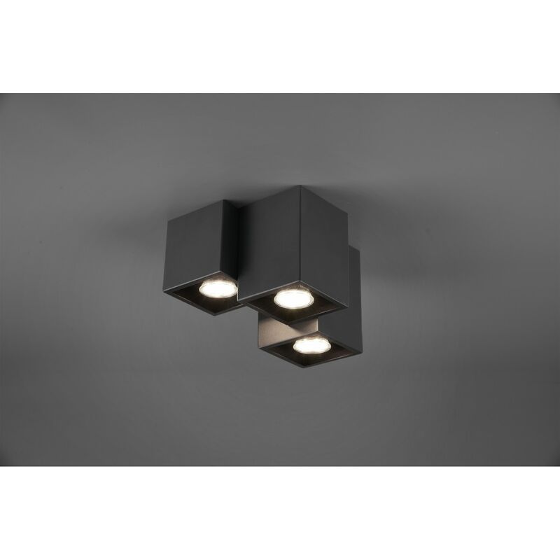 Plafoniera 3 Cubi Nero Opaco La plafoniera FERNANDO di Trio Lighting presenta una struttura composta da 3 cubi in metallo finitura nero opaco. Disponibile la variante dimensionale o nella finitura nero opaco. E' possibile installare 3 lampadine GU10 max 35 watt (acquistabili separatamente). Una lampada da soffitto dal design semplice e pulito, perfetto per arredare e illuminare con stile diversi ambienti della vostra casa in stile moderno, dal soggiorno living alla cameretta dei ragazzi. Disponibile anche nella variante di finitura bianco opaco. Caratteristiche: Struttura composta da 3 cubi in metallo finitura nero opaco Possibilità di installare 3 lampadine GU10 max 35 watt (acquistabili separatamente) Design semplice e pulito Adatto per ambienti moderni Disponibile anche nella variante di finitura bianco opaco