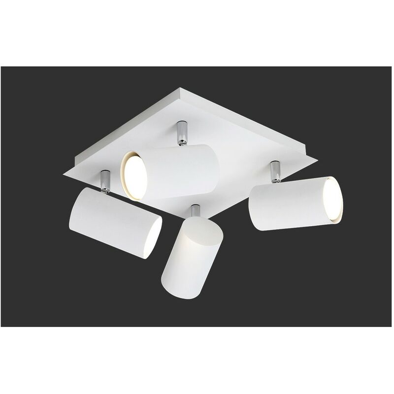 Plafoniera Quadrata 4 Faretti Orientabili Bianco La lampada da soffitto Marley del brand Trio Lighting è una plafoniera composta da base quadrata e 4 faretti spot orientabili, realizzata interamente in metallo di colore bianco. È possibile installare 4 lampadine con attacco GU10 max 35 watt, acquistabili separatamente. Un elemento pratico e versatile dal design lineare e moderno che si sposa bene ad ogni tipologia di ambiente sia residenziale che lavorativi o commerciale. Perfetto per essere installato ad esempio in una zona living, un ingresso o uno studio. Caratteristiche: Colore: Bianco Disponibile anche di colore: Nero, Nichel, Ruggine