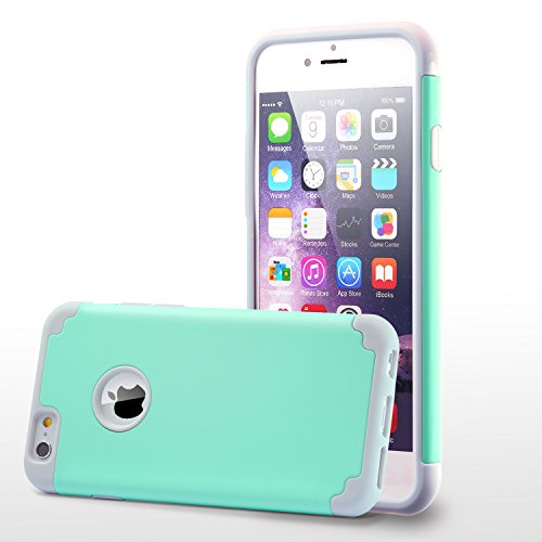IPhone 6plus/6s plus Cases, Case Cover duplice ibrido per iPhonee 6plus/6s plus. Cover duro per iPhone 6plus stampato Design Pc+ Silicone ibrido impatto grande Difensore custodia Combo duro morbido Cases Covers(Verde di Menta+ Grigo)