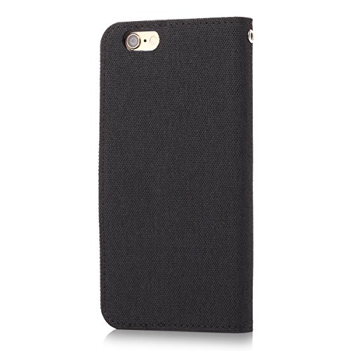IPhone 6s Case - SLEO iPhone 6s/iPhone 6 Premium Canvas Wallet Case, SLEO Tough Cotton Material Flip Folio Cover Case for iPhone 6s (2015)/iPhone 6(2014) - Black