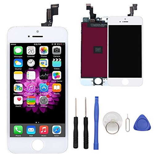 Exw Per iPhone 5s Bianco Schermo Parti di ricambio Display LCD Touch Screen lente in vetro kit di trasformazione + utensili inclusi, Bianca (4 pollici)