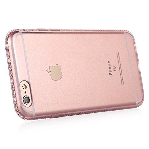 IPhone 6 / 6S 4.7 BlingFlex 0.7mm Custodia con Intorno Brillantini e Strass Cover Bumper Morbida in TPU Silicone Gel Gomma Flessibile Sottile Slim Rosa - Trasparente per iPhone 6 / 6S 4.7 Parubi