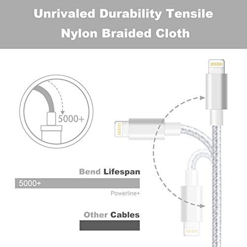 Cavo iPhone, Cavo Caricabatterie MiTE 3 Pacchetti da 2m per iPhone [Nylon Intrecciato Resistente] con 12 mesi di Garanzia Certificato per iPhone X/8/7 Plus/6 Plus/6s, iPad Air 2/Pro e Altro (Grigio-Argento)