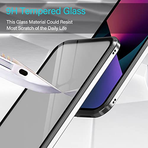 Per iPhone 13 Cover, Adsorbimento Magnetica Custodia, E-Lush Caso 360 Gradi Protezione Anteriore e Posteriore Vetro Temperato Cover Trasparente Custodia Flip Case Metal Bumper, Argento