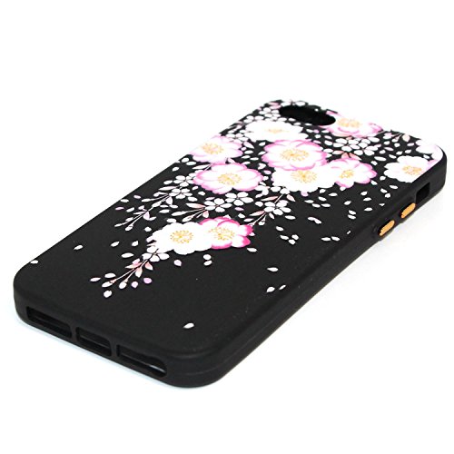 IPhone 5 Cover Nero, Aeeque Deluxe Bianco Fiori 3D Glitter del Modello Morbida Silicone Liscia Ultra Magro /Peso Leggero /Misura Esatta/ Anti Shock and Antigraffio Protezione Custodia per iPhone 5/5S/SE 4.0 Pollice - Fiori #12