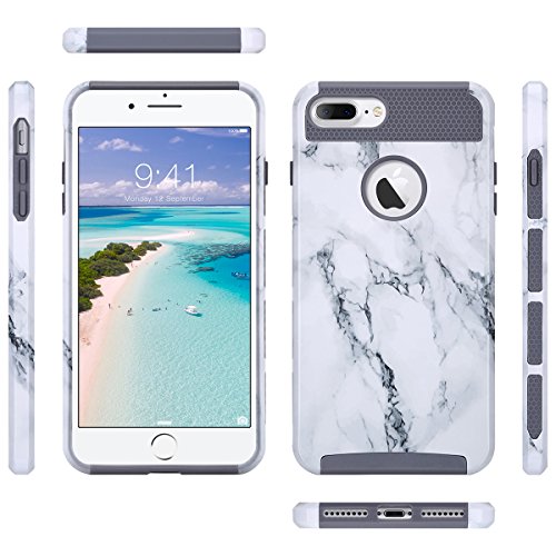 ULAK iPhone 7 Plus Cover, iPhone 7 Plus Custodia Ibrida a Protezione Integrale con Parte Esterna in 2 Strati di Morbido Silicone e Interno Rigido per Apple iPhone 7 Plus, Marmo