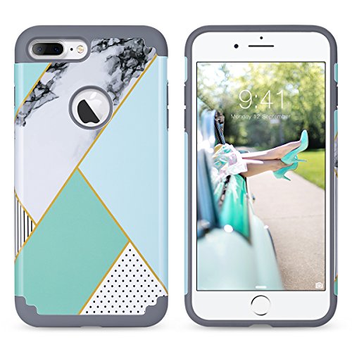 ULAK iPhone 7 Plus Cover, iPhone 7 Plus Custodia Ibrida a Protezione Integrale con Parte Esterna in 2 Strati di Morbido Silicone e Interno Rigido Case Cover per Apple iPhone 7 Plus (Mint Marmo)