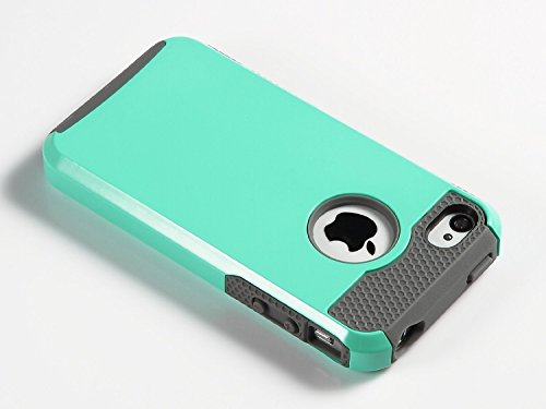 ULAK - iPhone 4S Cover - iPhone 4S Custodia, PC + TPU Cover Ibrida Rigida Super Protettiva con Doppio Strato in Silicone per iPhone 4S, iPhone 4 Cover - Verde + Grigio