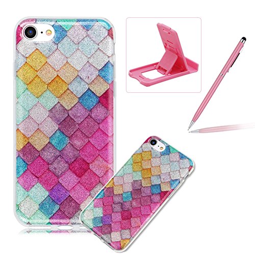 Per iPhone 6S,Cover iPhone 6,Custodia iPhone 6/6S 4.7 pollice Cover,Herzzer Moda elegante Lusso Brillantini Bling Glitters multicolore Rombi trapuntati Cristallo Case Caso,Ultra Slim Gel TPU Silicone Elastica Morbida Confine Telaio Protettiva Bumper shell Copertura per iPhone 6/6S 4.7"- Rombi Luminosa