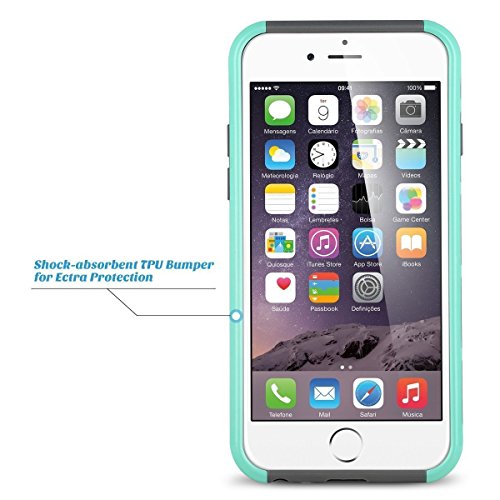 ULAK - iPhone 6S Cover, Custodia iPhone 6, Cover duro per iPhone 6 6S stampato Design PC+ Silicone ibrido impatto grande Difensore custodia Combo duro morbido Cases Covers per iPhone 6 6S (Verde + Grigio)