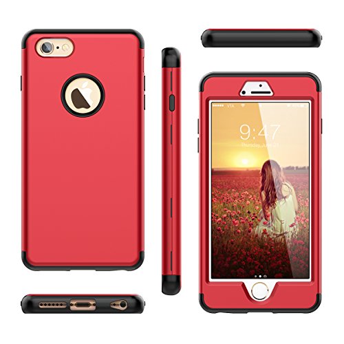 WE LOVE CASE iPhone 6 Plus iPhone 6s Plus Cover 3 in 1 Heavy Duty Armor Drop Proof Defender iPhone 6 Plus Custodia Case Rigida Elegant Backcover Hard con Plastica Bumper Belle Protettiva Protezione Duro Antiurto Ultraslim Coperture Girl Brillantini Donna Case per Apple iPhone 6 Plus 6s Plus 5,5 Rosso