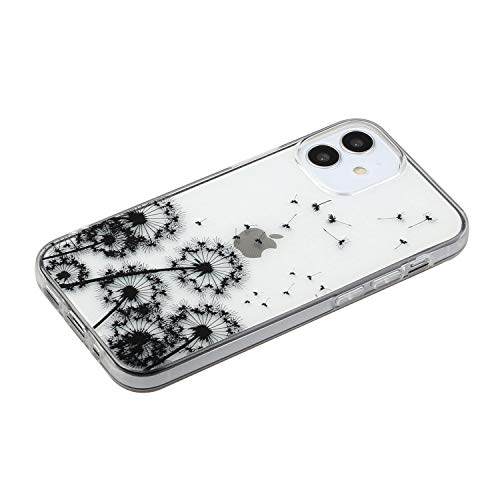 Per iPhone 12 Mini Cover Case, HengJun 3D Pattern Stampato Ultra Sottile Sottile Morbido Ibrido Ibrido TPU Gel di Silicone Pelle Gomma Pelle TPU Cover - Dente di leone nero