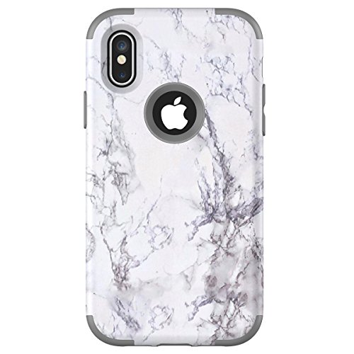 WE LOVE CASE iPhone X Cover Marmo 360-Grad All Inclusive Full Screen Protection Anti-Drop iPhone X / 10 Custodia Cassa Duro del PC di Plastica e Silicone Morbido Inter Protettiva Protezione Shock Proof Bumper Coperture Posteriori Anti Graffio Caso Backcover per Apple iPhone X / 10 5,8 - Grigio