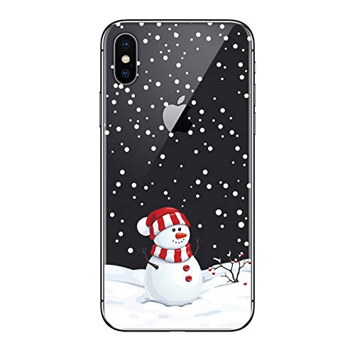 IPhone XR Cover Natale, Custodia iPhone XR Silicone Ultra Sottile Trasparente con Natale Disegni Morbida Slim Gel TPU Antiurto Protettiva Bumper Case per iPhone XR, Carino Cartoon Pupazzo di Neve