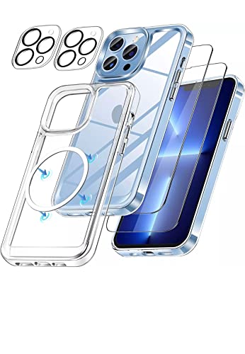 IPhone Covers Iphone 13 ProMax kit 5 in 1 kit magsafe custodia wireless kit con 2 protezzione telecamere 2 pellicola vetri temperati per protezione schermo. 1 cover compatibile con magsafe antiurto.