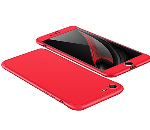 IPhone 8 Custodia,2ndSpring 360 Gradi della copertura completa 3 in 1 Hard PC Case Cover con Protezione Dello Schermo di Vetro Temperato,Ultra Sottile Anti-Scratch Bumper Protettiva Cover Case per iPhone 8 Rosso ( Nota: non è adatto per iPhone 7 )