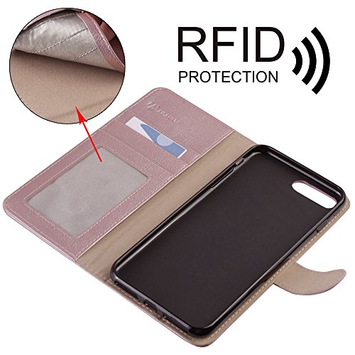 IPhone 8/7 Custodia, Abacus24-7 RFID Blocco Portafoglio con Sopporto Pieghevole e Tasche interne per carte di credito o d'identita - Oro Rosa