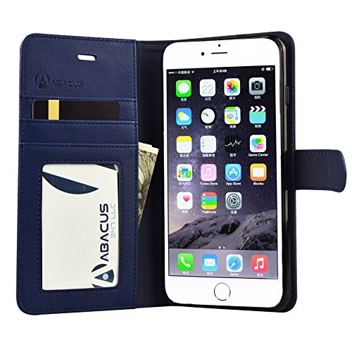 IPhone 7 Plus Custodia, Abacus24-7 RFID Blocco Portafoglio con Sopporto Pieghevole e Tasche interne per carte di credito o d'identita - Blu