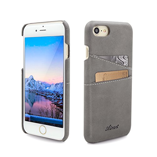 IPhone 7 Custodia, Airart Premium Morbida Pelle in Stile Classico Cassa del Raccoglitore, Posteriore Ultra Sottile Copertura con 2 ID Della Carta di Credito Scanalature per iPhone 7 4.7", Grigio