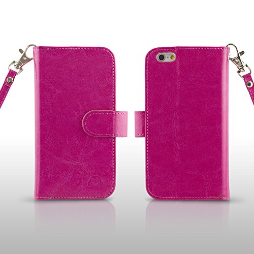 Comoda custodia per telefono e portafoglio in uno. Custodia in stile portafoglio ti permette di prendere il telefono e il vostro quotidiano Essentials con voi senza portare il vostro portafoglio. Custodia presenta sette Card slot per carte di credito e debito tra cui uno slot ID trasparente per un facile accesso al tuo foto ID. Due grandi tasche interne per trasportare denaro, coupon, biglietti Valet e altri oggetti. Chiusura, permette di facile e veloce accesso e sicuro il vostro caso. Cinturino da polso rimovibile per maggiore comodità.