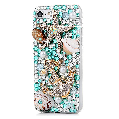 IPhone 7 Custodia Bling Glitter 3D DIY Strass Trasparente Rigida Plastica Hard - MAXFE.CO Case Cover Shock-Absorption Bumper,Duro Plastica PC Protettiva,Cristallo Diamante per Cover iPhone 7 4.7" - Ancore,stelle marine,conchiglie