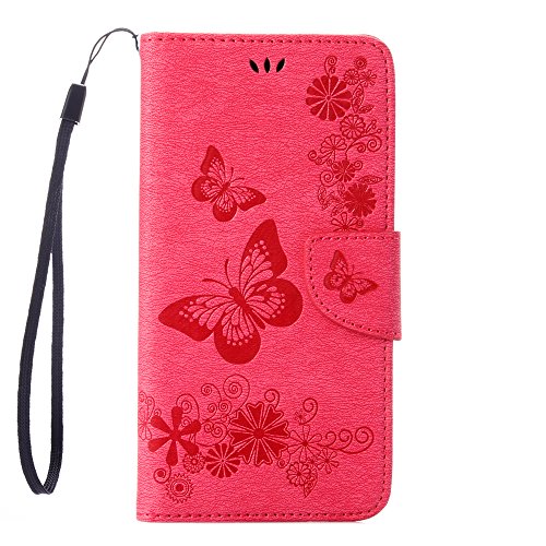 IPhone 6 / iPhone 6S Custodia, COOSTOREEU Copertura della cassa del basamento del supporto del raccoglitore di cuoio dell'unità di elaborazione della farfalle per iPhone 6 / iPhone 6S 4.7 Inch,Rosa rossa