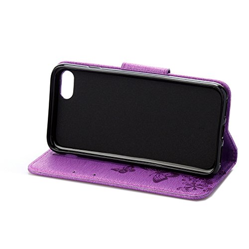 IPhone 7 Custodia, COOSTOREEU Copertura della cassa del basamento del supporto del raccoglitore di cuoio dell'unità di elaborazione della farfalle per iPhone 7 4.7 Inch,Viola