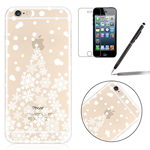 IPhone 6 4.7" Custodia, iPhone 6S Cover, iPhone 6 Case, Felfy Ultra Sottile Gel Custodia in Silicone e TPU Morbido Trasparente Chiaro Protettiva Skin Caso Case Cover per Apple iPhone 6 e 6S Belle Bianco Natale fiocco di neve Design, con 1x Proteggi schermo + 1x Nera Stilo Penna