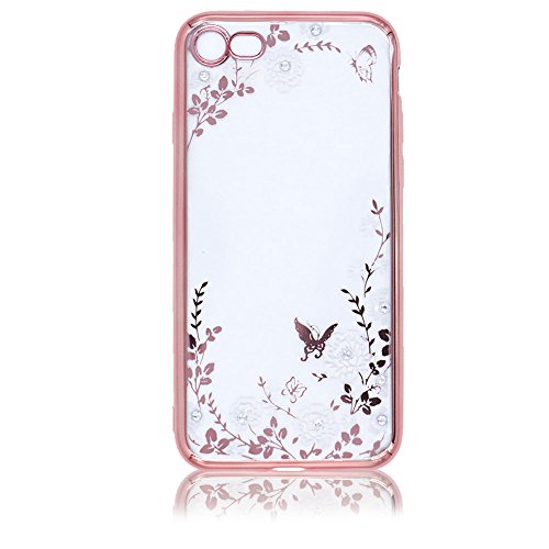 Per iPhone 7 4.7" Custodia cover,Herzzer trasparente TPU Oro rosa frame design Bianca Floreale Unico Molto sottile Modeling Snella Placcatura Silicone TPU Gel flessibile Anti shock Caso per iPhone 7 4.7" + 1 x Gratuito Basamento Telefono Bianca Regolabile + 1 x Gratuito Pennino Argento
