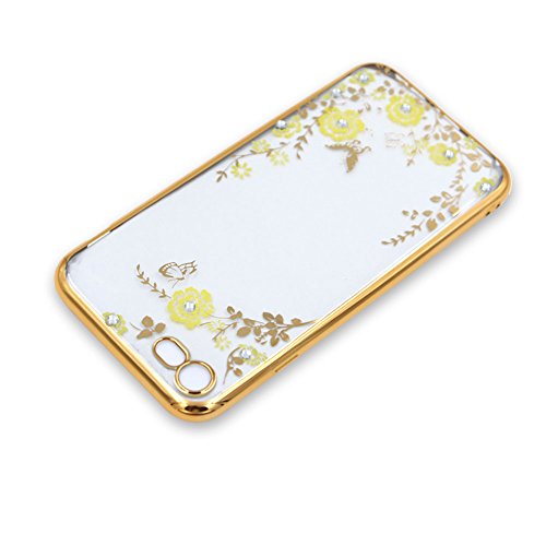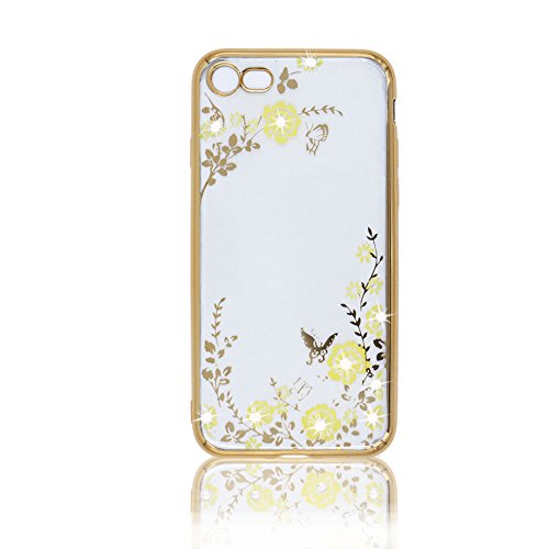 Per iPhone 7 4.7" Custodia cover,Herzzer trasparente TPU Gold frame design Giallo Verde Floreale Unico Molto sottile Modeling Snella Placcatura Silicone TPU Gel flessibile Anti shock Caso per iPhone 7 4.7" + 1 x Gratuito Basamento Telefono Giallo Regolabile + 1 x Gratuito Pennino Giallo