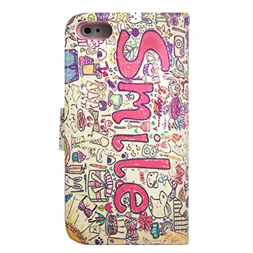 Iphone 5 Custodia, iphone 5s case cover, ISAKEN Creative Disegno Book Anti-graffio cover case cover - PU Leathlux Lovers Flip protettivo case Portafoglio Wallet Caso copertina con Magnetico e morbido TPU cassa interna per Apple iphone 5S 5 - Smile food ragazza