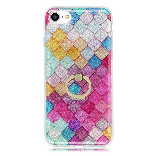 Per iPhone 7 Plus Custodia Cover,iPhone 7 Plus 5.5 pollice Copertura,Herzzer Moda elegante Lusso Brillantini Bling Glitters multicolore Rombi trapuntati Cristallo Case Caso,Ultra Slim Gel TPU Silicone Elastica Morbida Confine Telaio Protettiva Bumper shell Copertura per iPhone 7 Plus 5.5"- Rombi Luminosa con anello