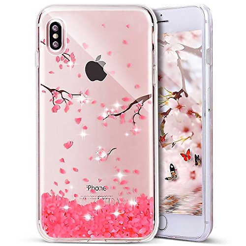 IPhone X Custodia, iPhone X Cover, iPhone X 5.8 Custodia Silicone, JAWSEU Angelo Ragazza Disegno Creativo Ultra Sottile Cristallo Trasparente Custodia per iPhone X Coperture Case Flessibile Gomma Morbida Silicone Custodia Cover per iPhone X Protectiva Bumper Anti Graffio Anti Scossa Anti Scivolo Clear TPU Back Cover per Apple iPhone X - Fiori di Ciliegio