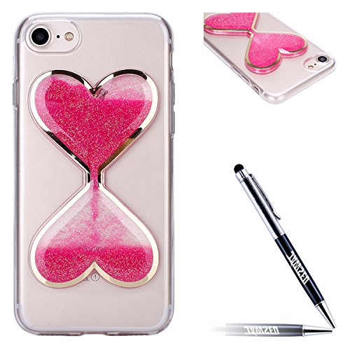 IPhone 5C Custodia, iPhone 5C Cover, iPhone 5C Custodia Silicone Trasparente, JAWSEU Cristallo di lusso Scintilla Scintillio Flowing Liquid Bling Bling Glitter Custodia Cover per iPhone 5C Ultra Sottile Silicone Gel Liquido di flusso lucido Amore Cuore Clessidre Ccintillante Protettiva Cover Custodia per iPhone 5 C Custodia Bumper Case Crystal Clear Custodia per iPhone 5C 4.0 - Rosa Caldo