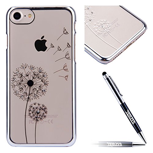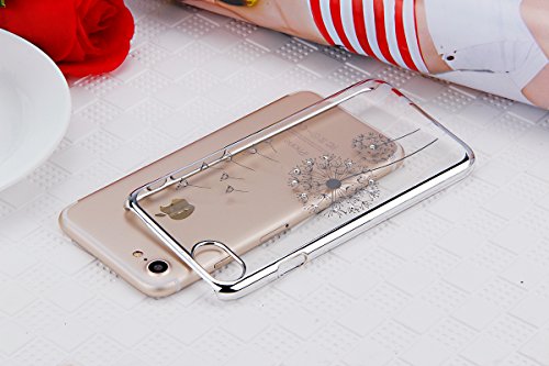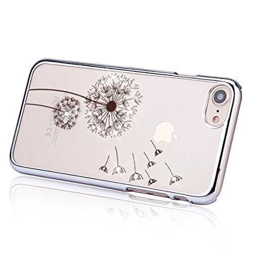 IPhone 8 Custodia, iPhone 8 Cover, iPhone 8 4.7 Custodia Trasparente, JAWSEU Sparkles Cristallo Chiaro Super Sottile Case Custodia Cover per iPhone 7 / 8 con Placcatura telaio con il modello del dente di leone Diamante Protettiva Bumper Antigraffio Anti Scratch Rigida Protezione Trasparente Cover Custodia Per iPhone 7, Apple iPhone 8 Custodia - Dente di leone Argento