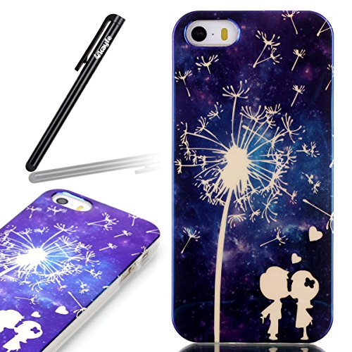 Iphone 5 Custodia Back cover, Ukayfe abbagliamento personalizzata Blu-ray Bumper Cover morbida flessibile estremamente sottile pelle antigraffio Silicone Protettivo Skin Protettiva Shell Case Cover Per iphone 5/5S Con Stilo Penna - Coppia romantica sotto Dandelion