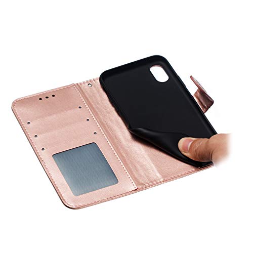 IPhone X Custodia Flip, Goffratura Design Case in PU Pelle Internamente Silicone TPU Cover Portafoglio Cover Premium Custodia per Apple iPhone X/iPhone XS. LD Mandala Rose Gold